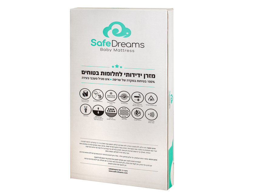 הרכב המוצר: אינו נדלק, ללא מעכבי בעירה, ללא חומרים רעילים, הספוג עשוי משרף, 11-13 ק"ג/מ"ק. ידידותי לסביבה. הבד עשוי מבמבוק, אנטי בקטריאלי. המזרן עומד בתקן 5418. עומד במבחן הסיגריה ובמבחן האש הגלויה. מומלץ ע״י הרשות הארצית לכבאות. למזרן 2 צדדים: צד קשיח עד גיל שנה וצד גמיש מעל שנה. הבד בלתי חדיר לנוזלים. הספוג נושם.